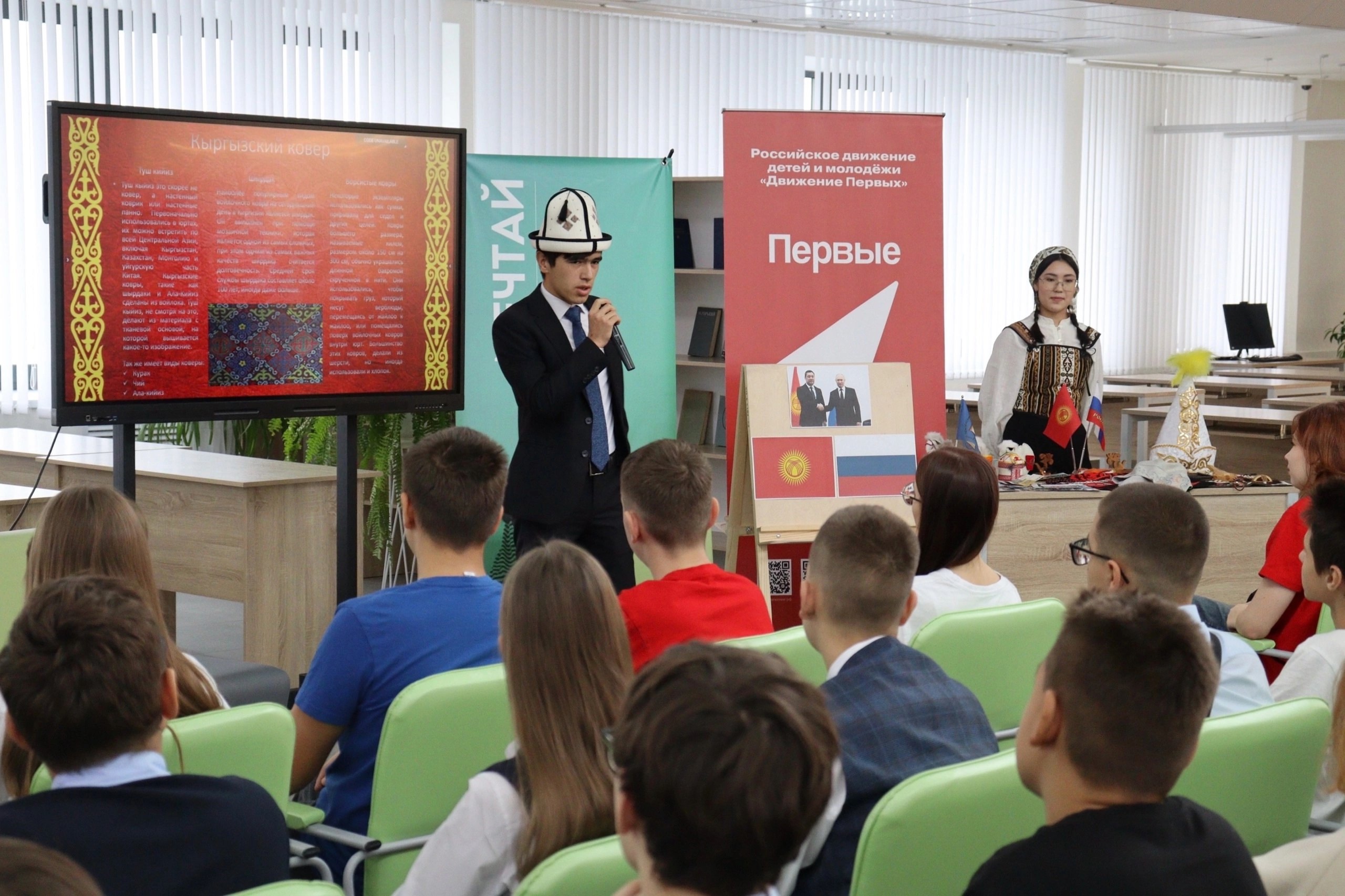 في إطار اللقاء التفاعلي والتعليمي "دروس الصداقة"، قام الطلاب الدوليون من معهد التعاون الدولي بجامعة بينزا الحكومية من جمهورية قيرغيزستان بتعريف طلاب المدرسة الثانوية رقم 1 بثقافة وتقاليد بلدهم الأصلي.